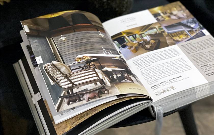 Relié en dur avec couverture authentique en tissu gris clair, le livre possède une sur-couverture en couleur. La page de garde est parfumée avec la signature olfactive Authentic Hotels & Cruises. Enfin, il est doté de deux marque-pages pour mieux sélectionner vos coups de cœur...